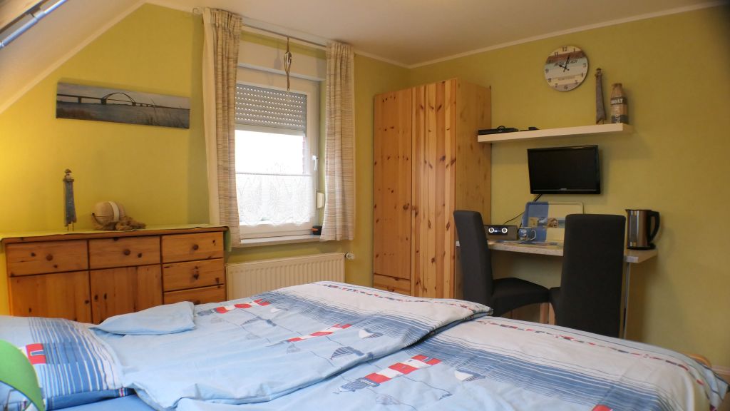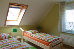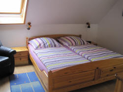 ....zum Kuscheln haben Sie auch hier genügend Platz. 2 Matratzen á 100x200cm. ....und bei Bedarf hat das Schlafzimmer noch Platz für ein Extrabett. |