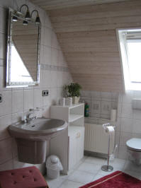 Selbstverständlich hat das Badezimmer auch eine Dusche und einen Fön. |
